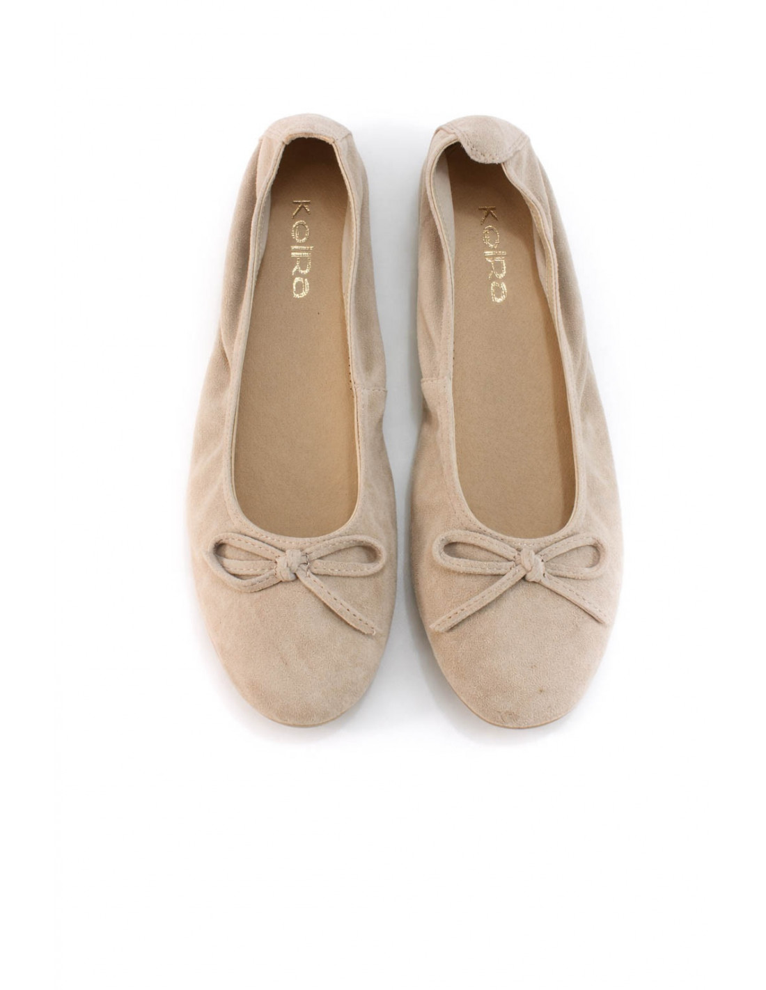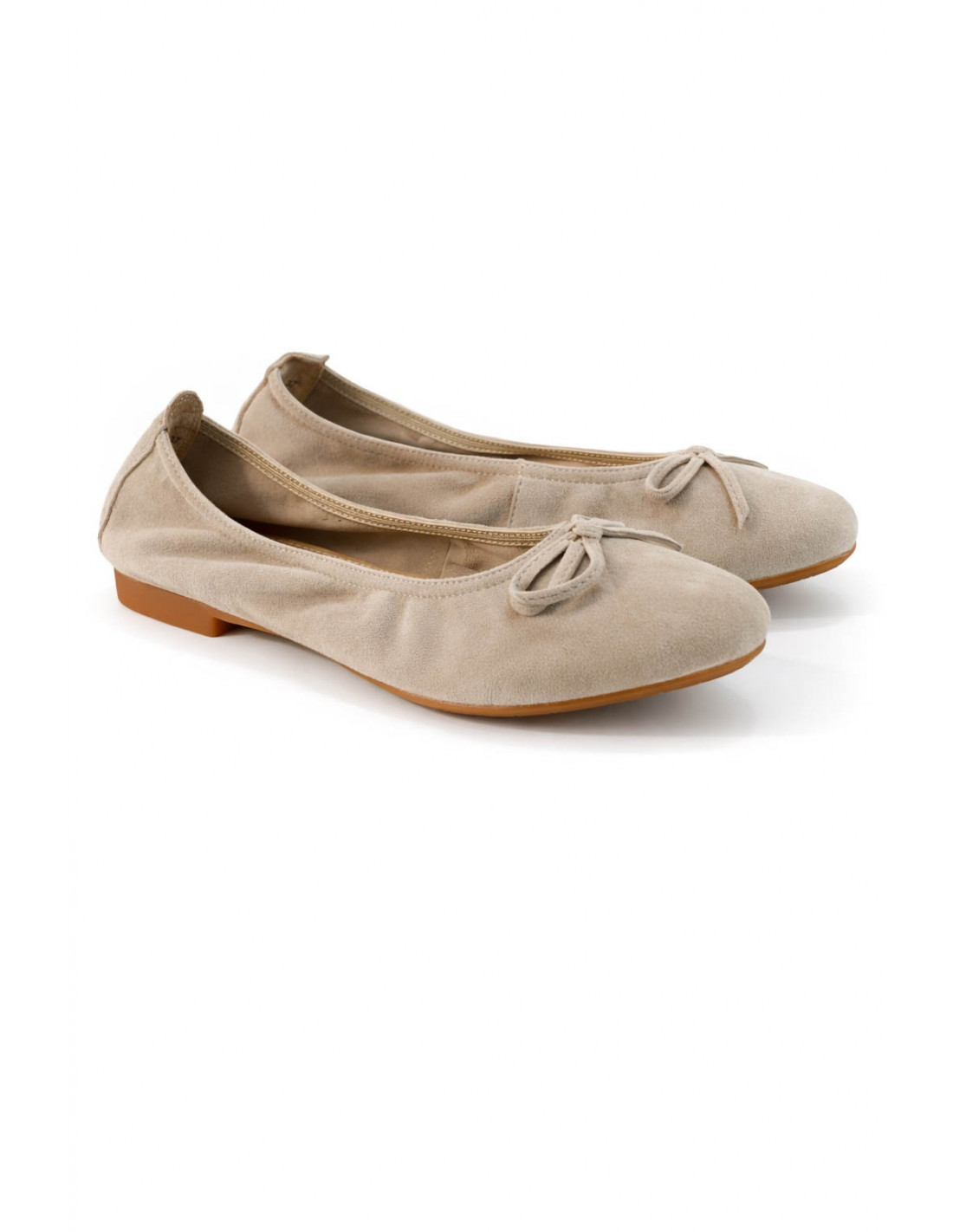 Bailarinas planas tipo Rock&Roll fabricadas en ante muy suave piedra y sin forro. Punta redonda con detalle de lazo en el empeine. Suela fina de goma flexible que aporta comodidady un estilo casual fe