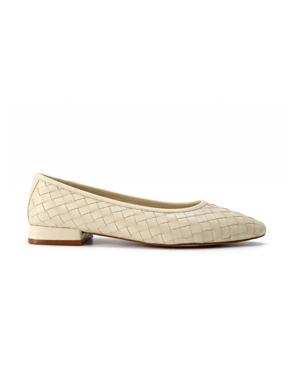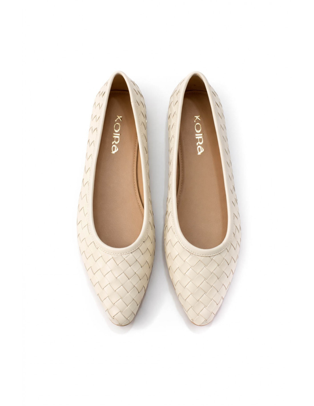 Bailarinas planas en acabado beig claro con diseño trenzado. Punta ligeramente afilada que estiliza el pie y suela cómoda para uso diario. Ideales para looks casuales o elegantes con un toque moderno