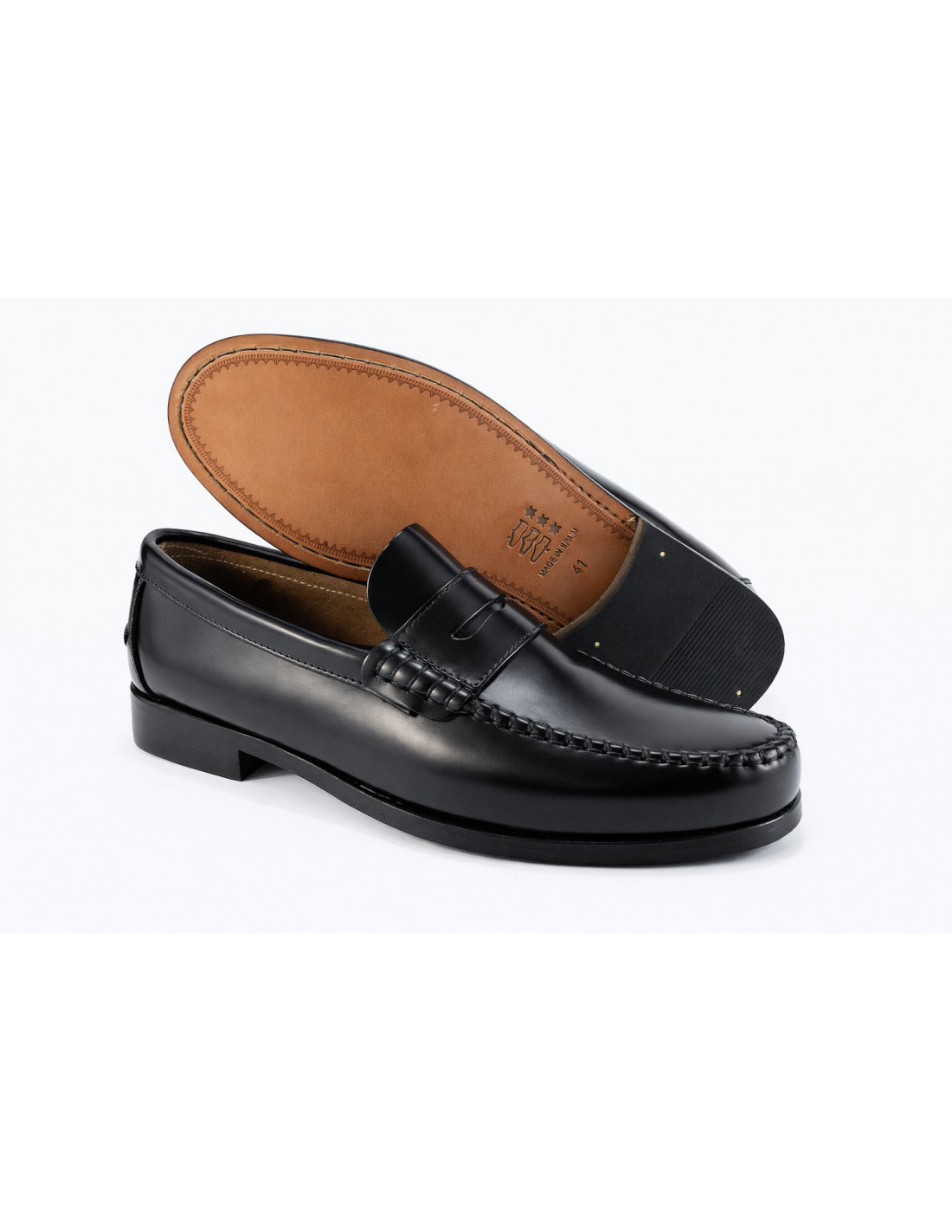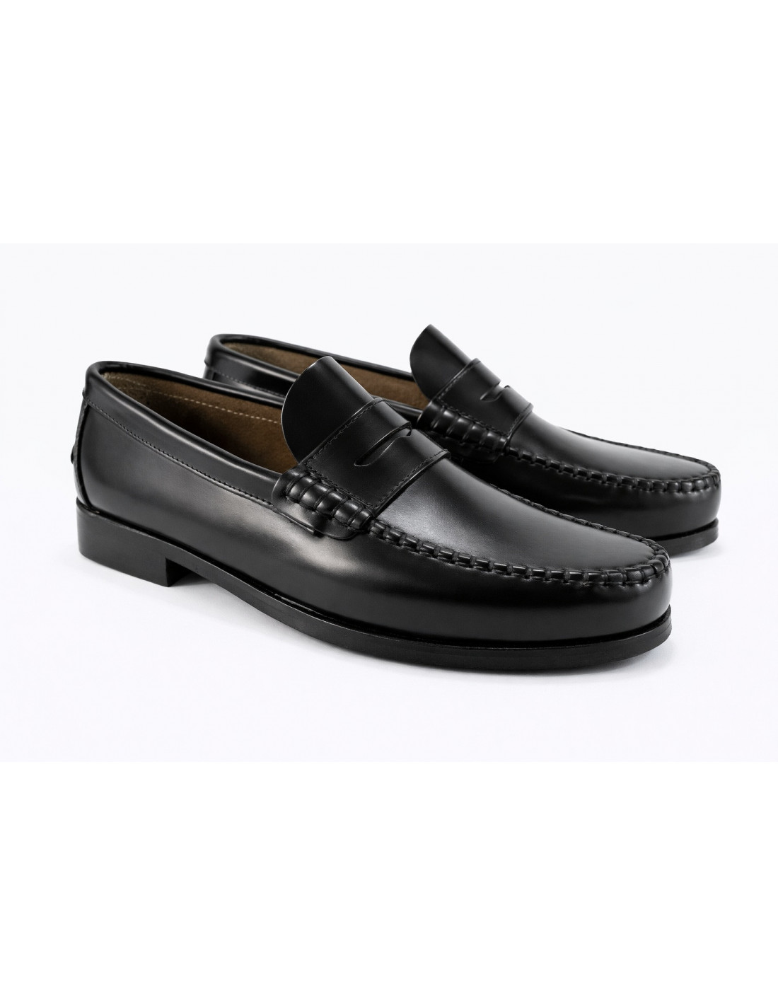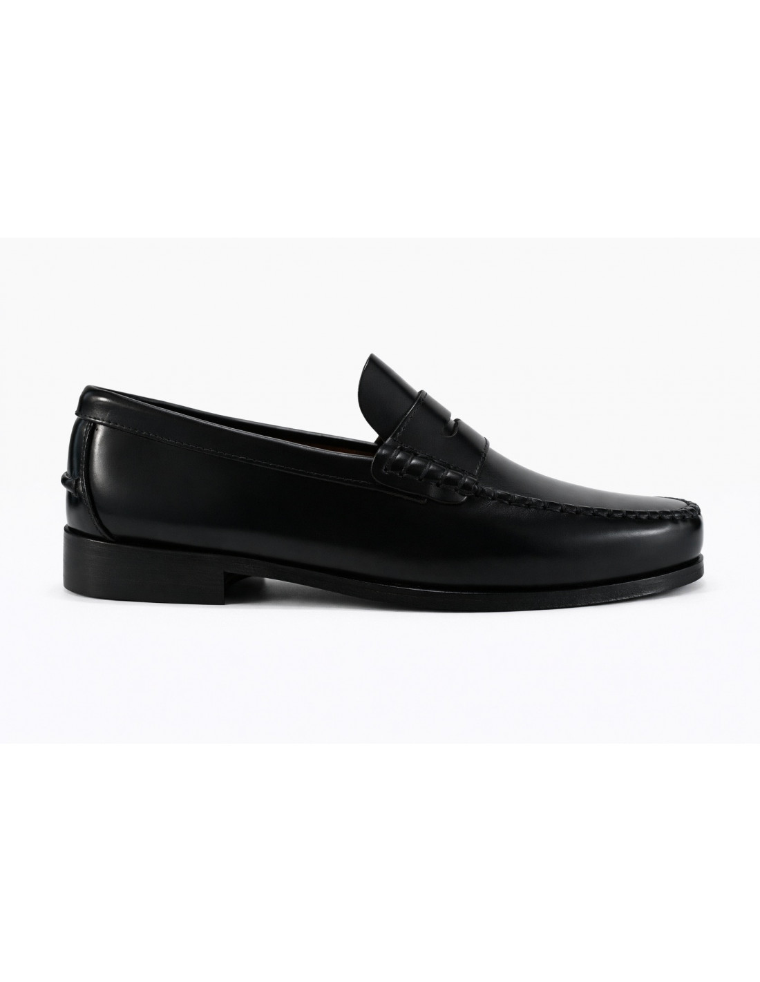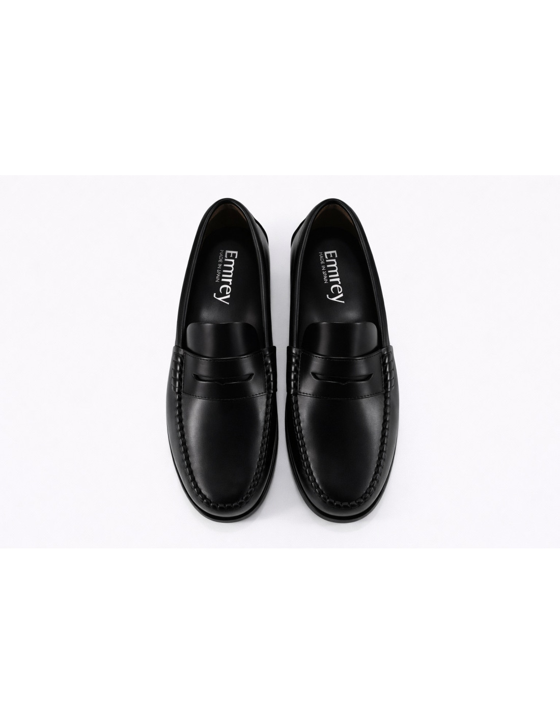 Mocasín clásico de la marca EMIREY, fabricado en piel florentic negra, sin forro y suela de piel.