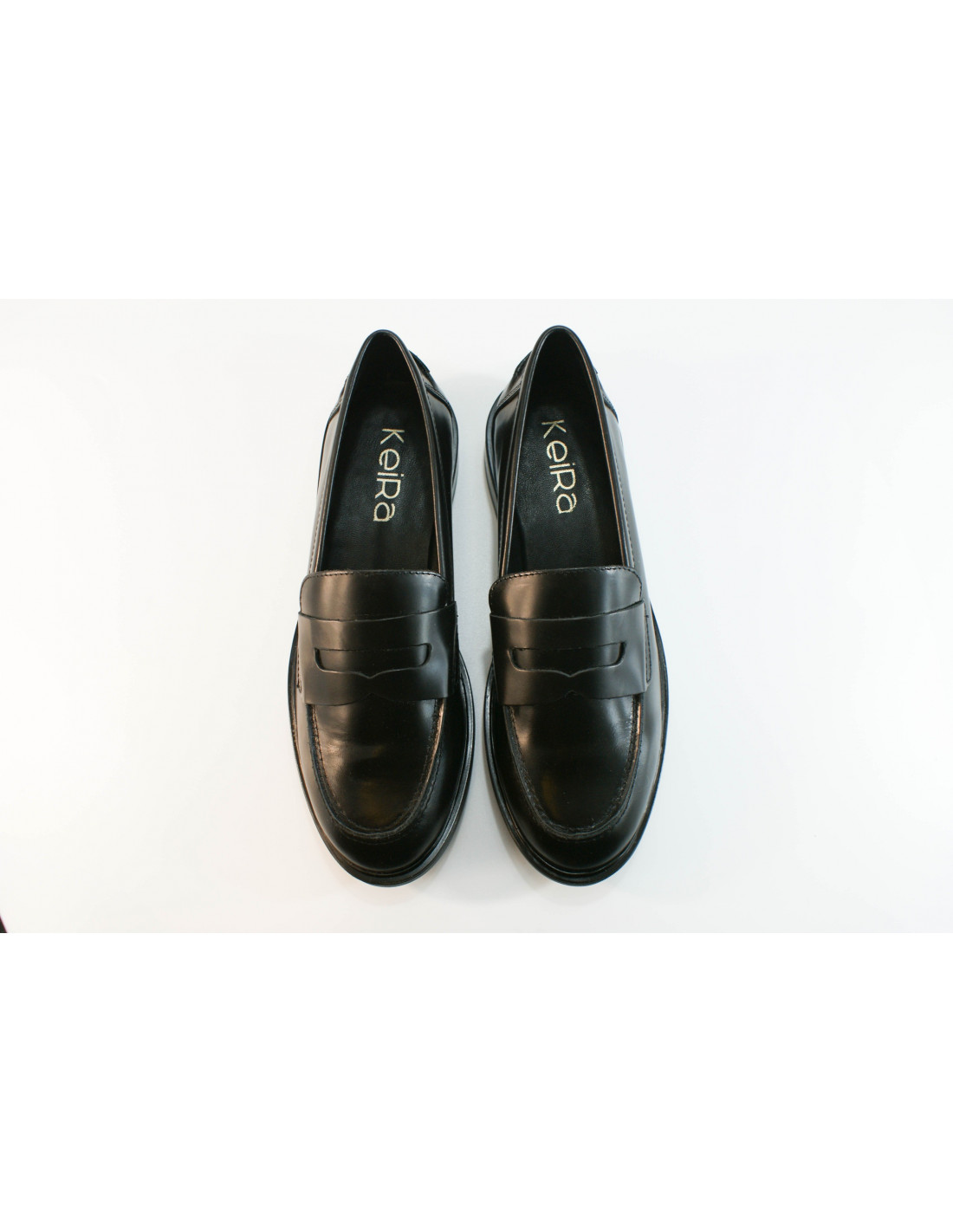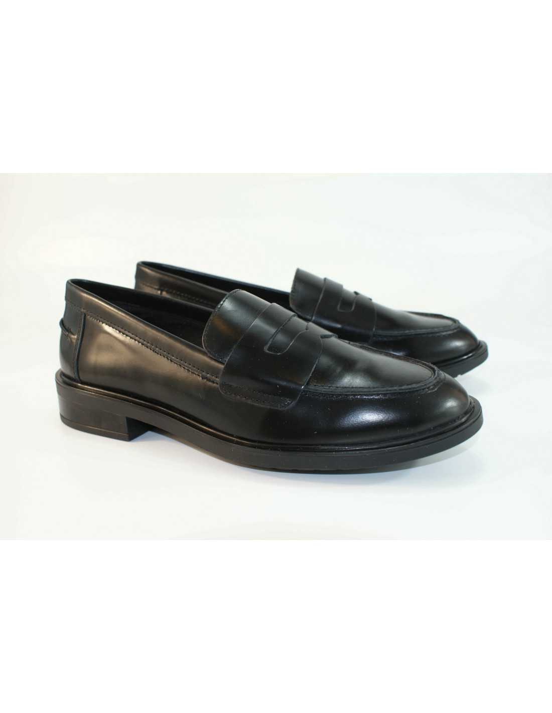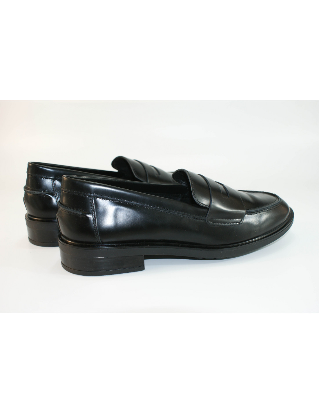 Classic moccasin with a decorative strap, crafted from black Florantic leather. Leather lining and insole. Rubber sole. A wardrobe essential.
